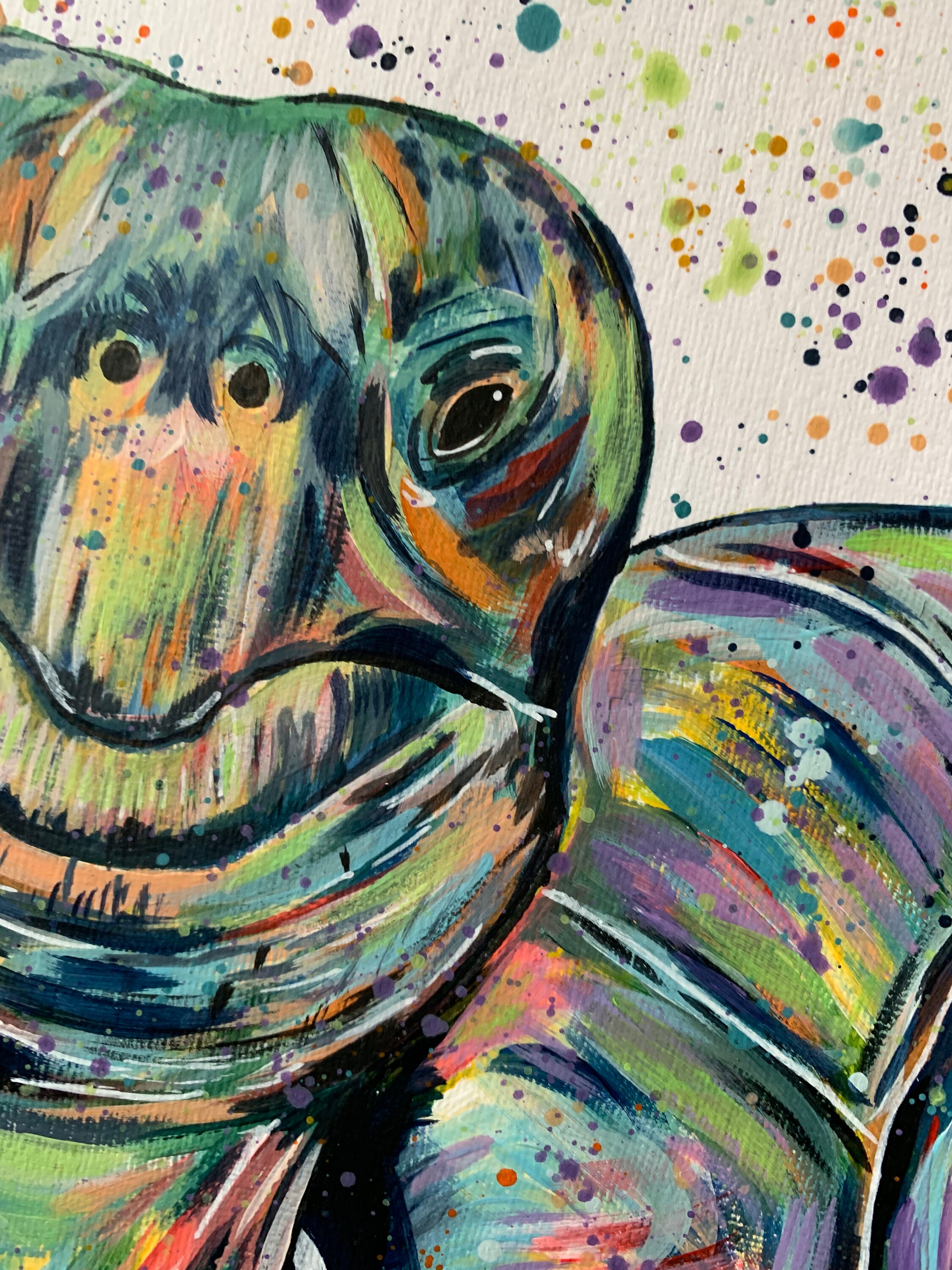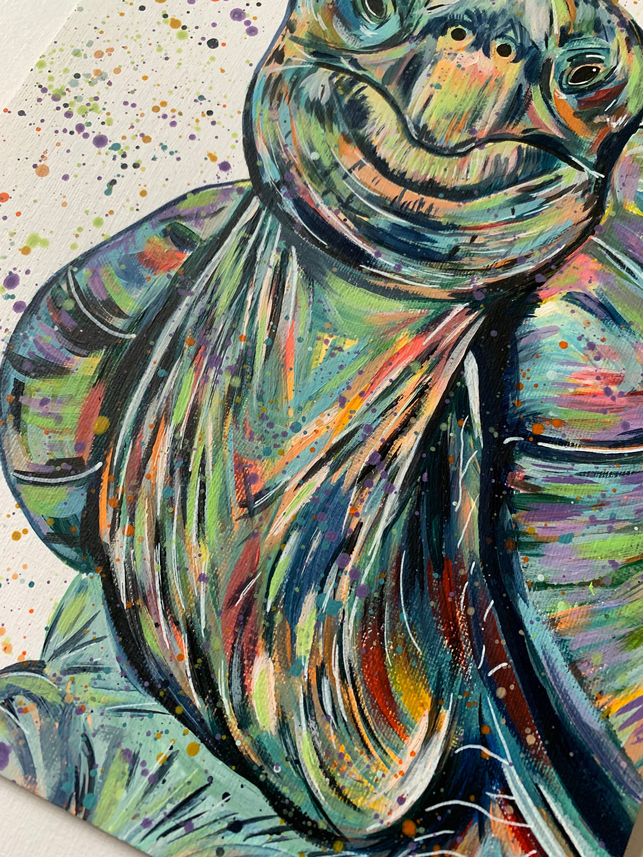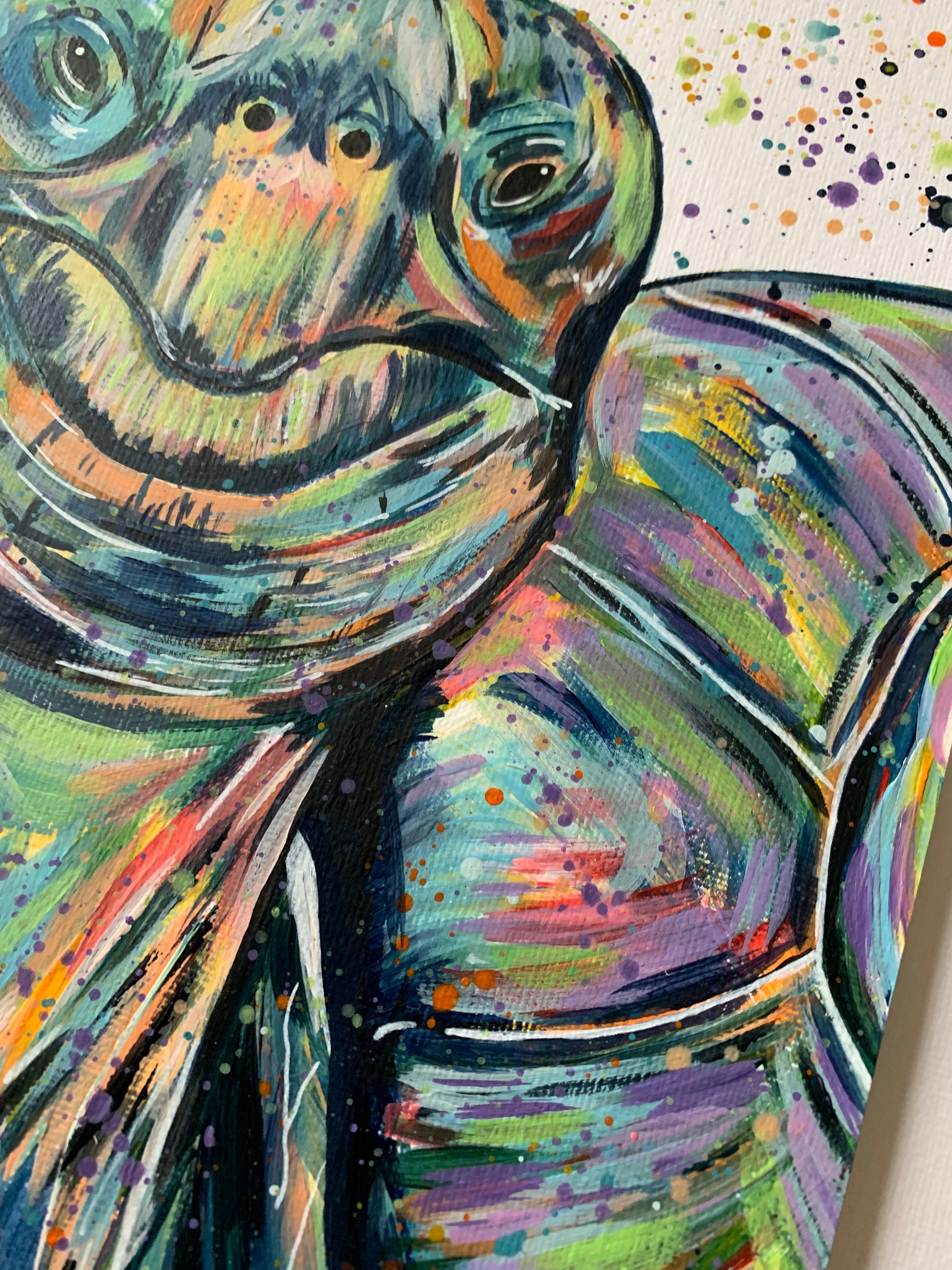 A beautiful original colourful acrylic painting of a Green and Rainbow Shades giant Tortoise.