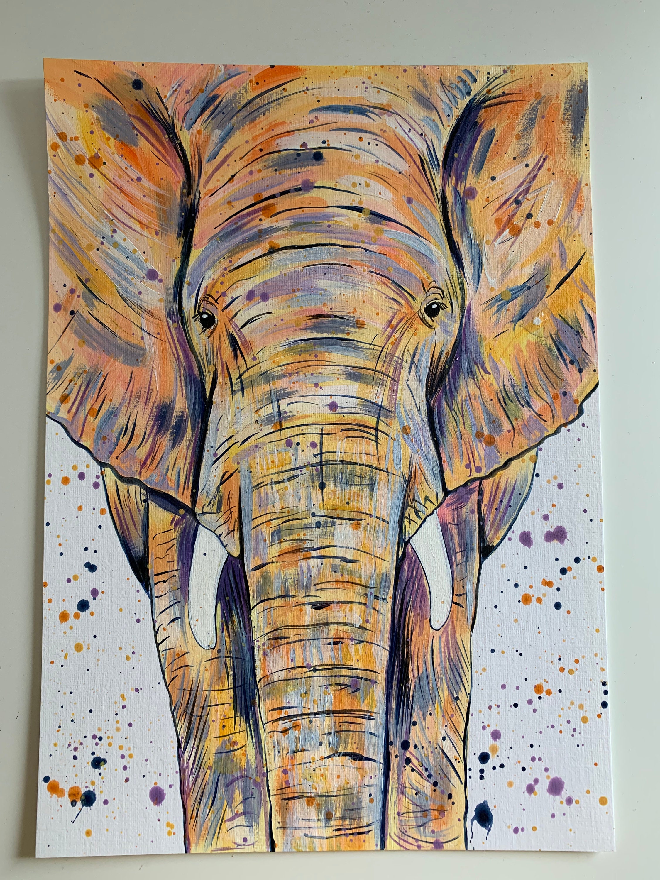 Original Elephant Painting, ‘Edith’, by Emma LC, Original Art, Colourful Animal Art, Elephant Painting, Nursery Decor, Wildlife Art