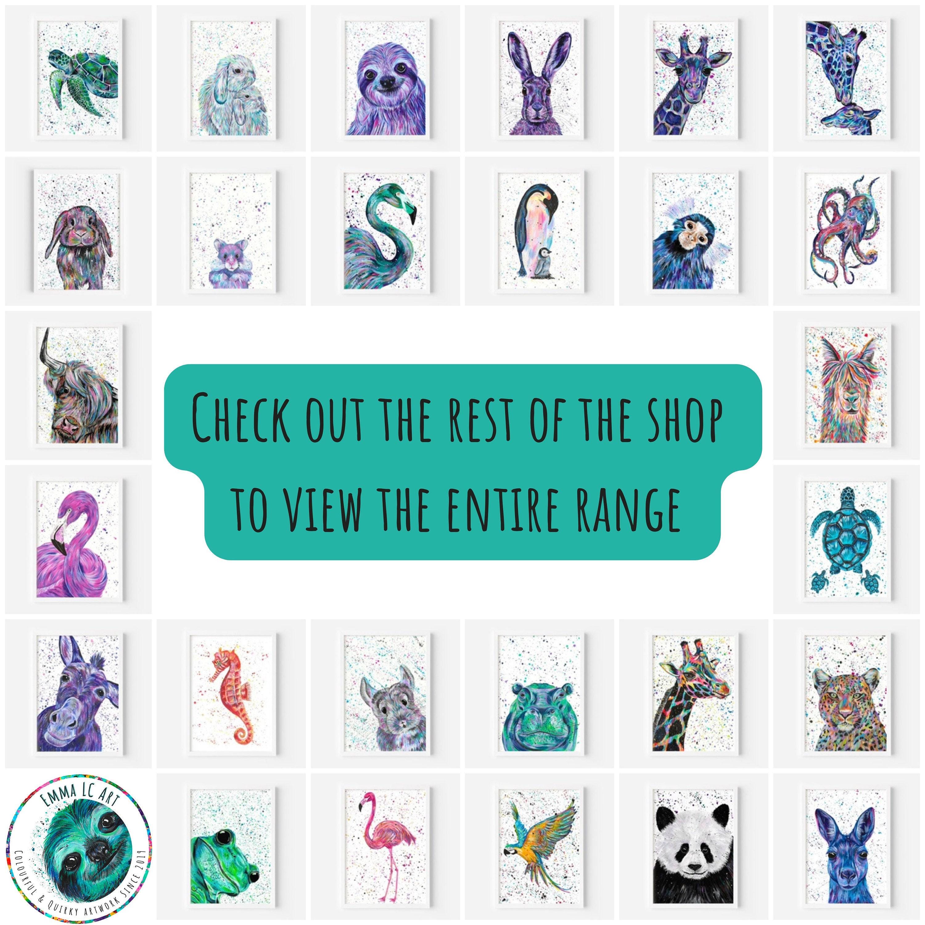 Colourful and quirky animal artworks, designed to brighten up any space in your home. These unique prints are perfect for adding a splash of colour and complimenting your decor. Celebrate the wonder of wildlife with these vibrant eye catching designs that are full of life and personality! Ranging from Sea Life to Reptiles, Safari animals to Jungle Life, there’s something for everyone who loves the animals of the world. Display these beautiful art prints in any room. They look amazing in living rooms, kitchens, children’s rooms, nursery’s, offices, bedrooms and more!