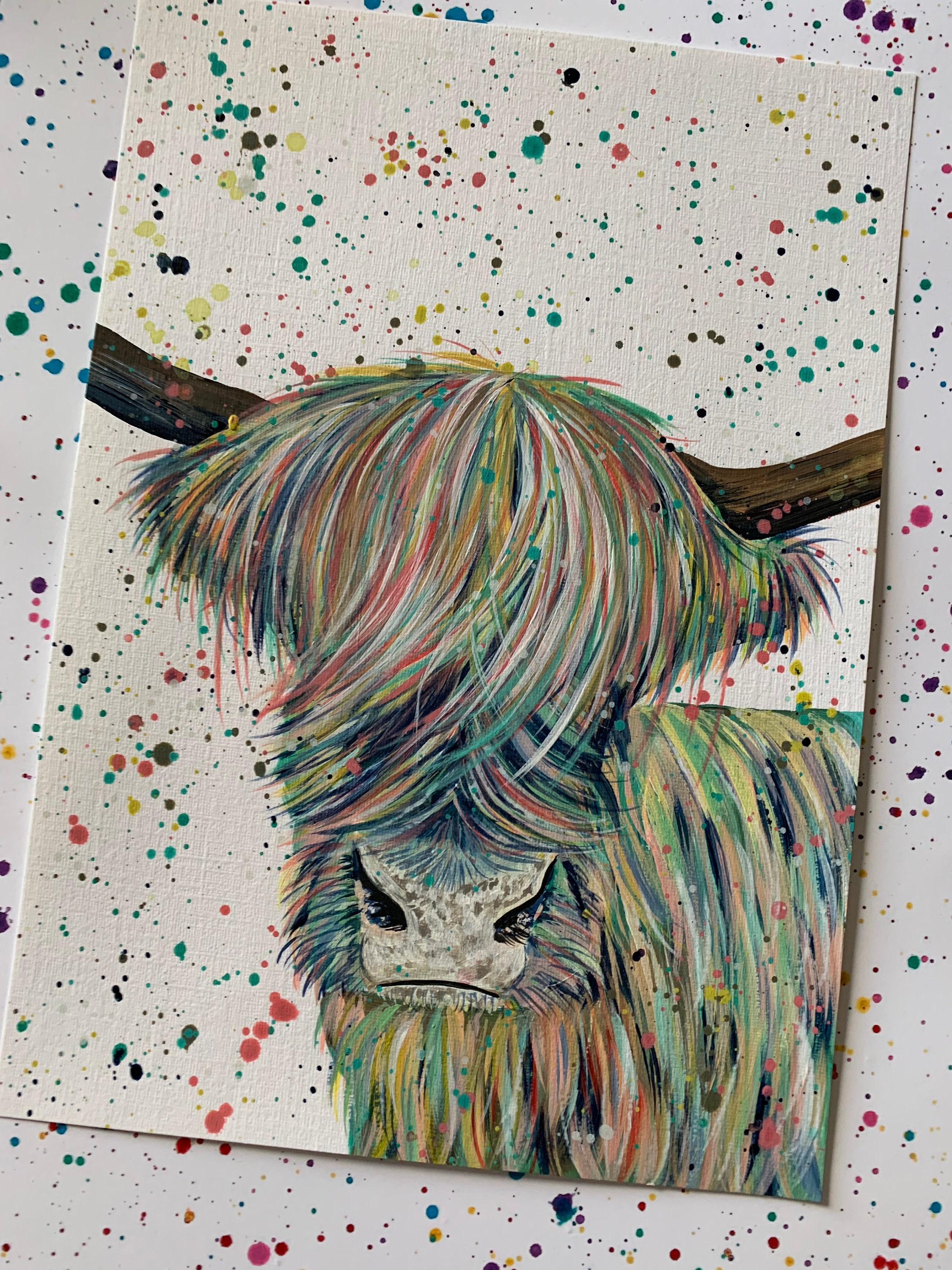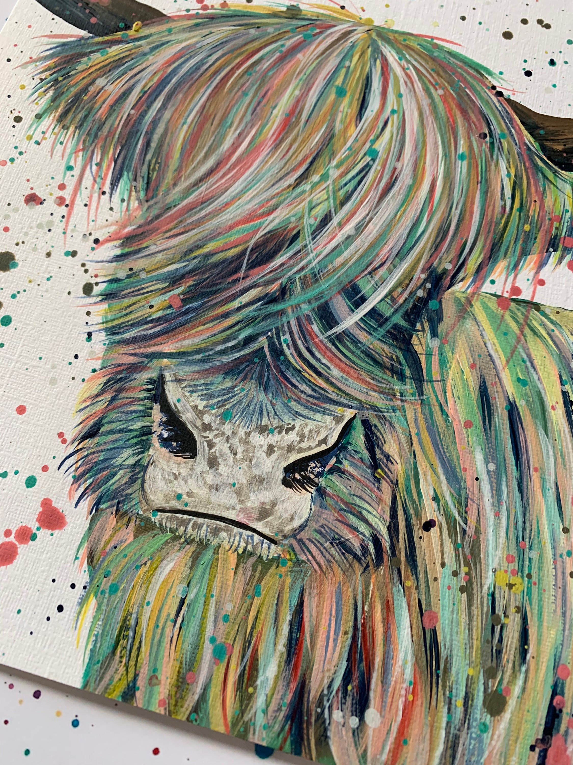 Colourful Highland Cow Original Painting, ‘Roland’
