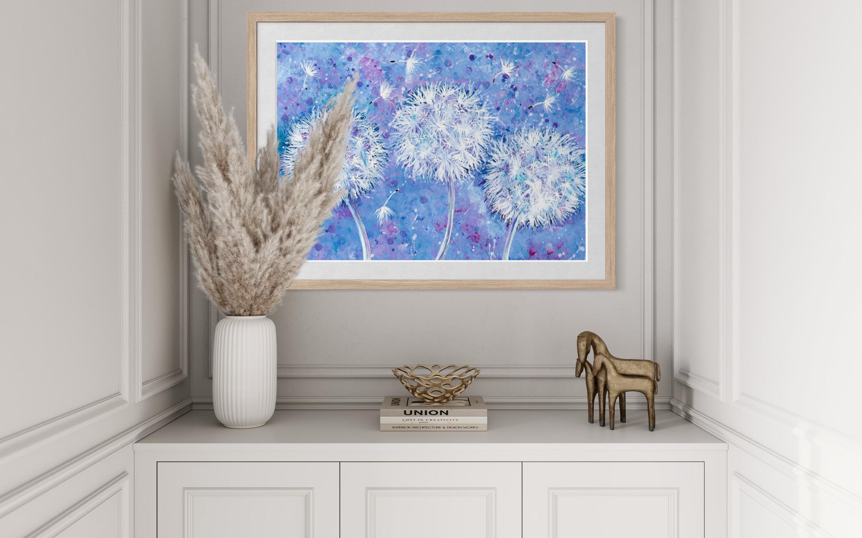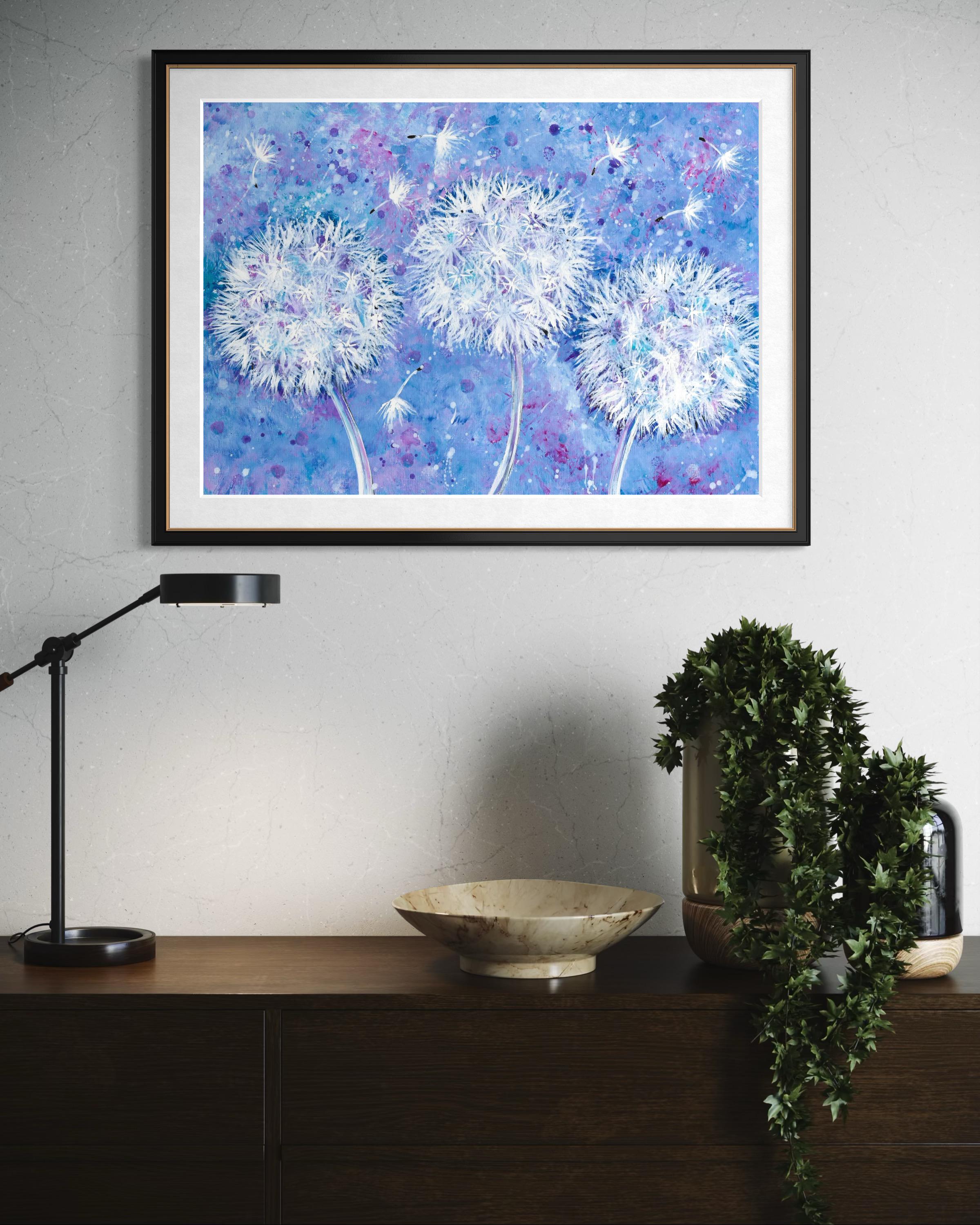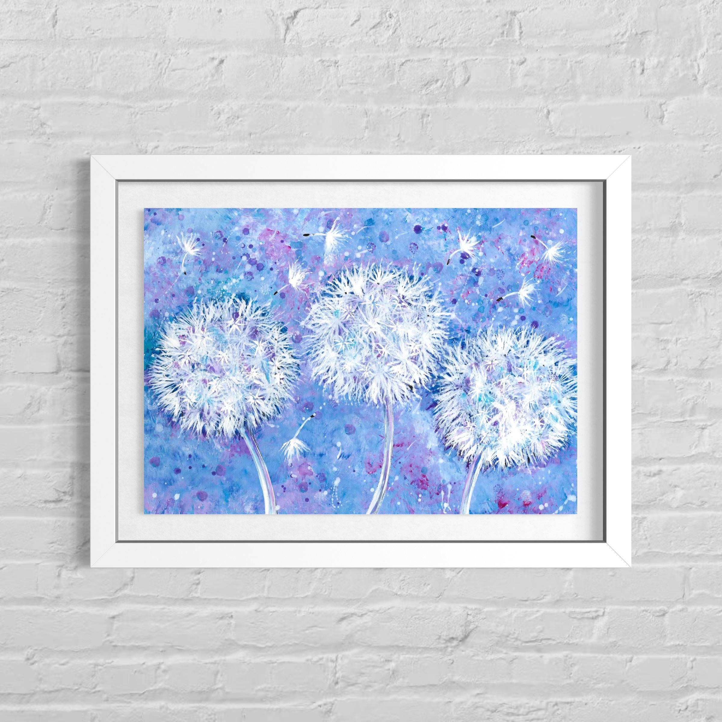 Dandelion Wish Flowers Whimsical Art Print