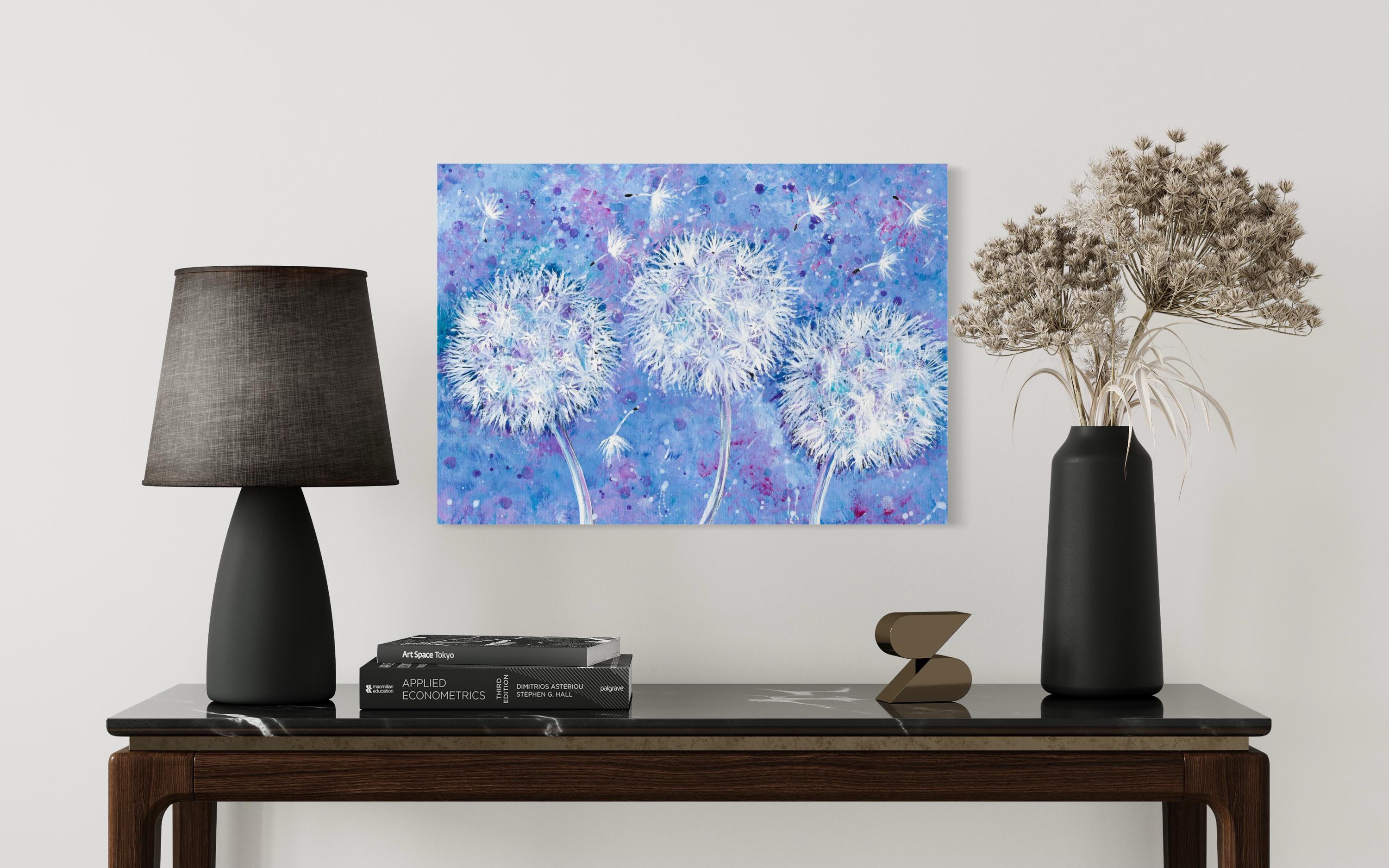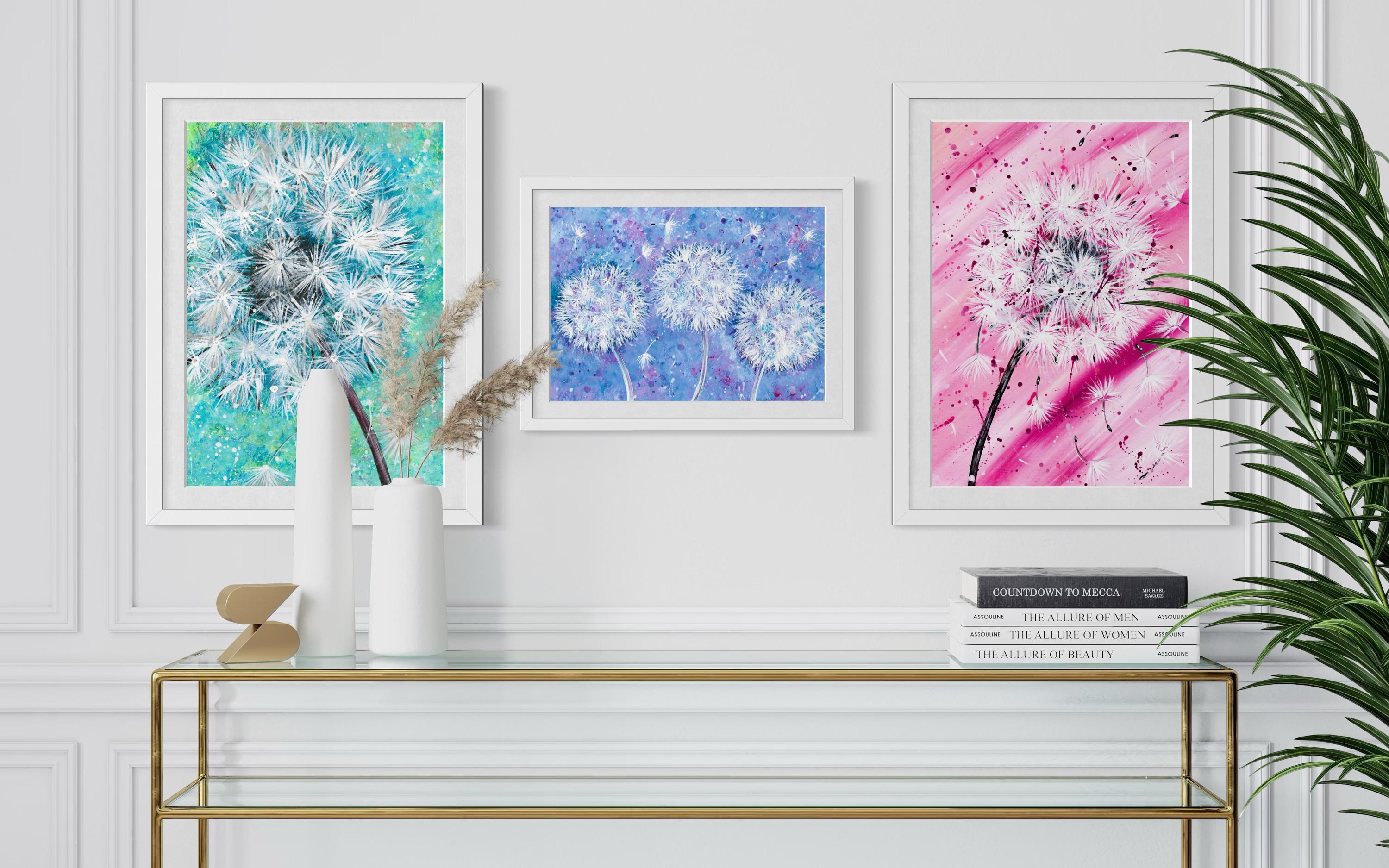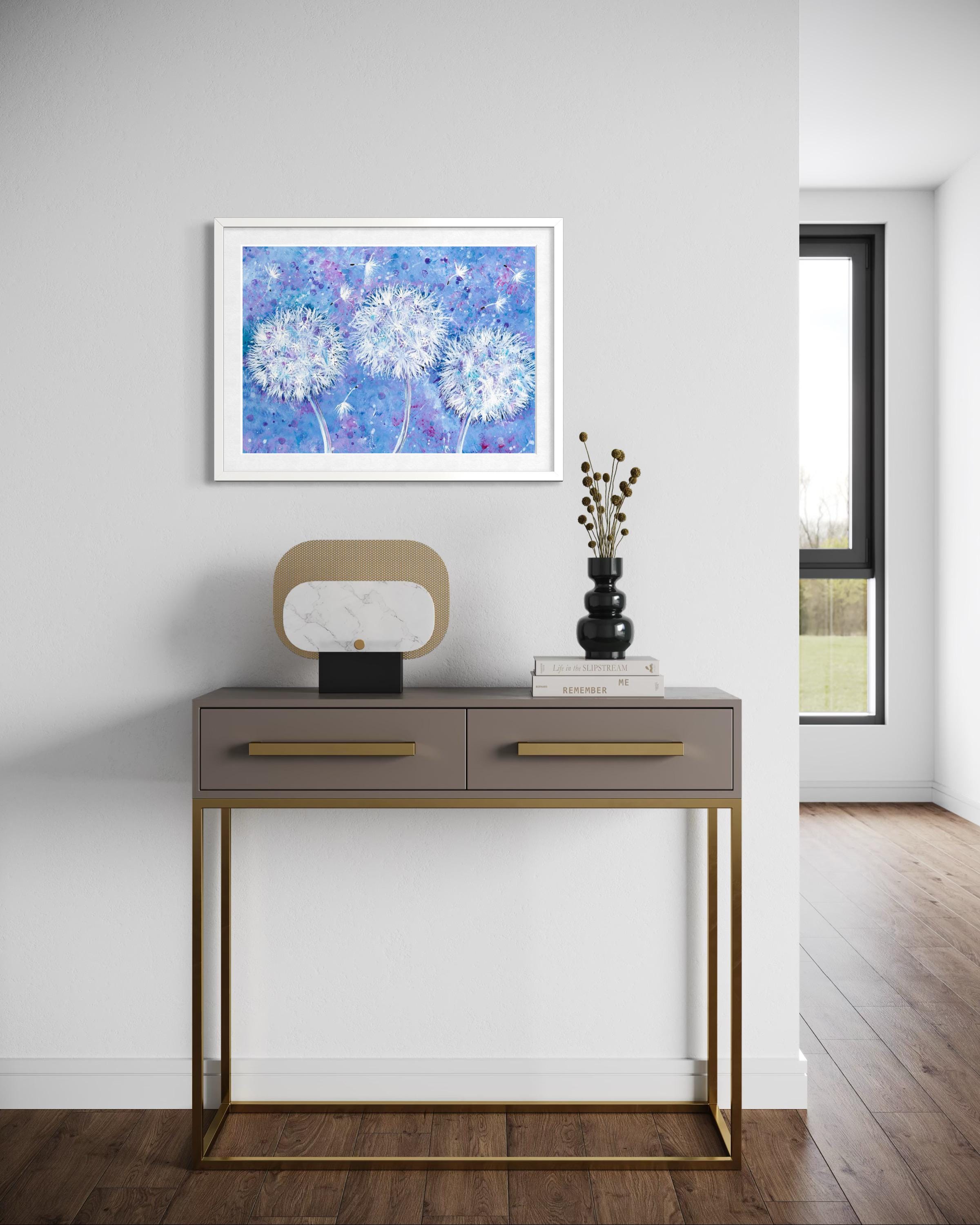 Dandelion Wish Flowers Whimsical Art Print