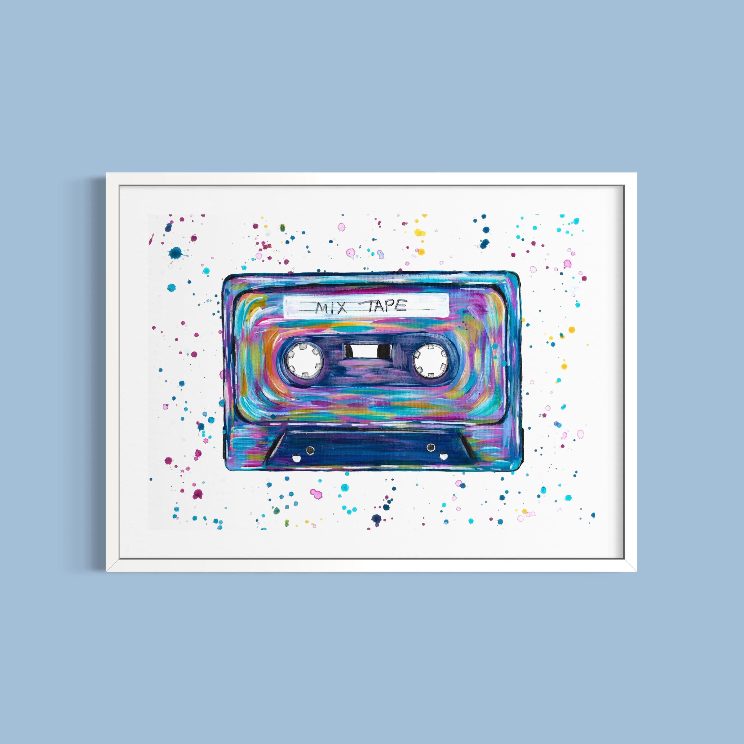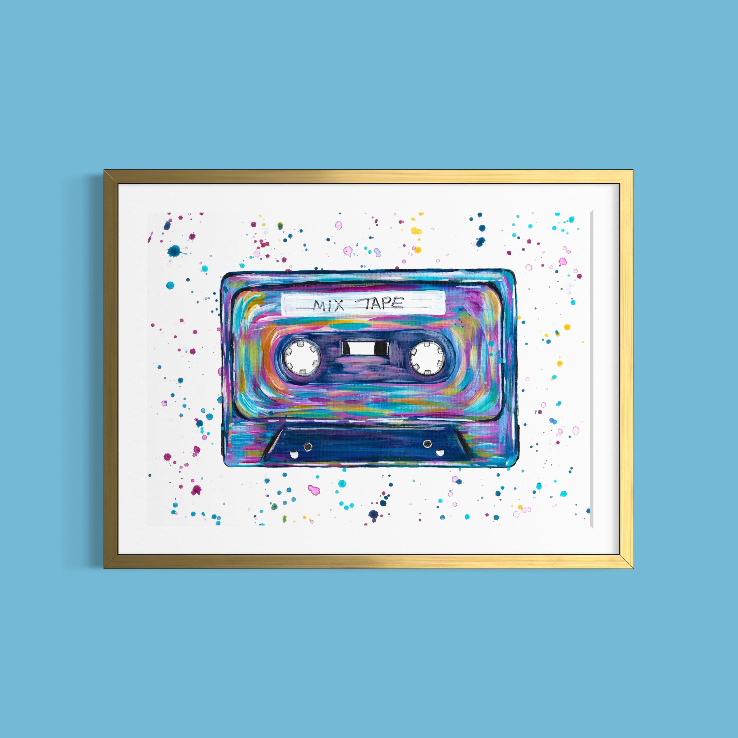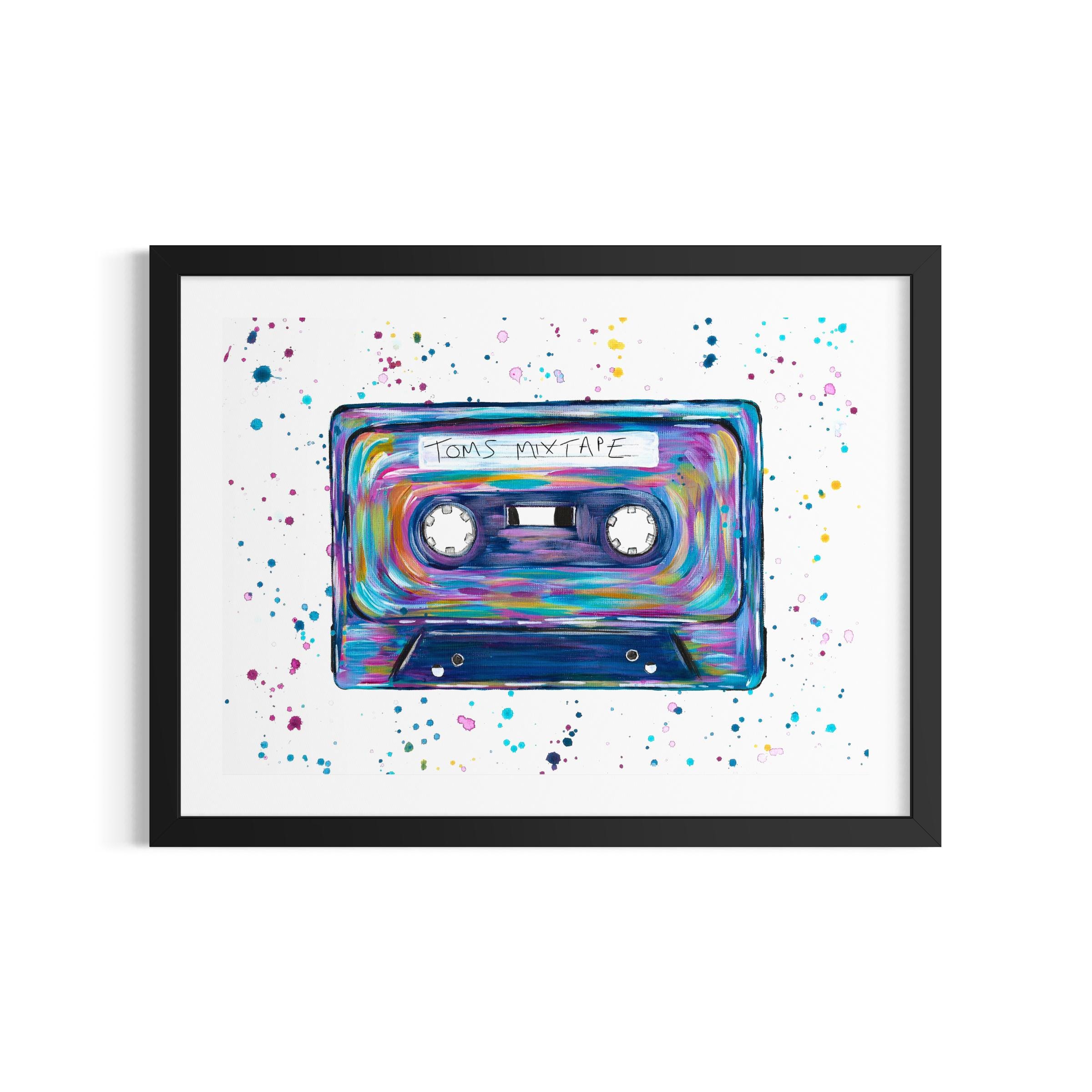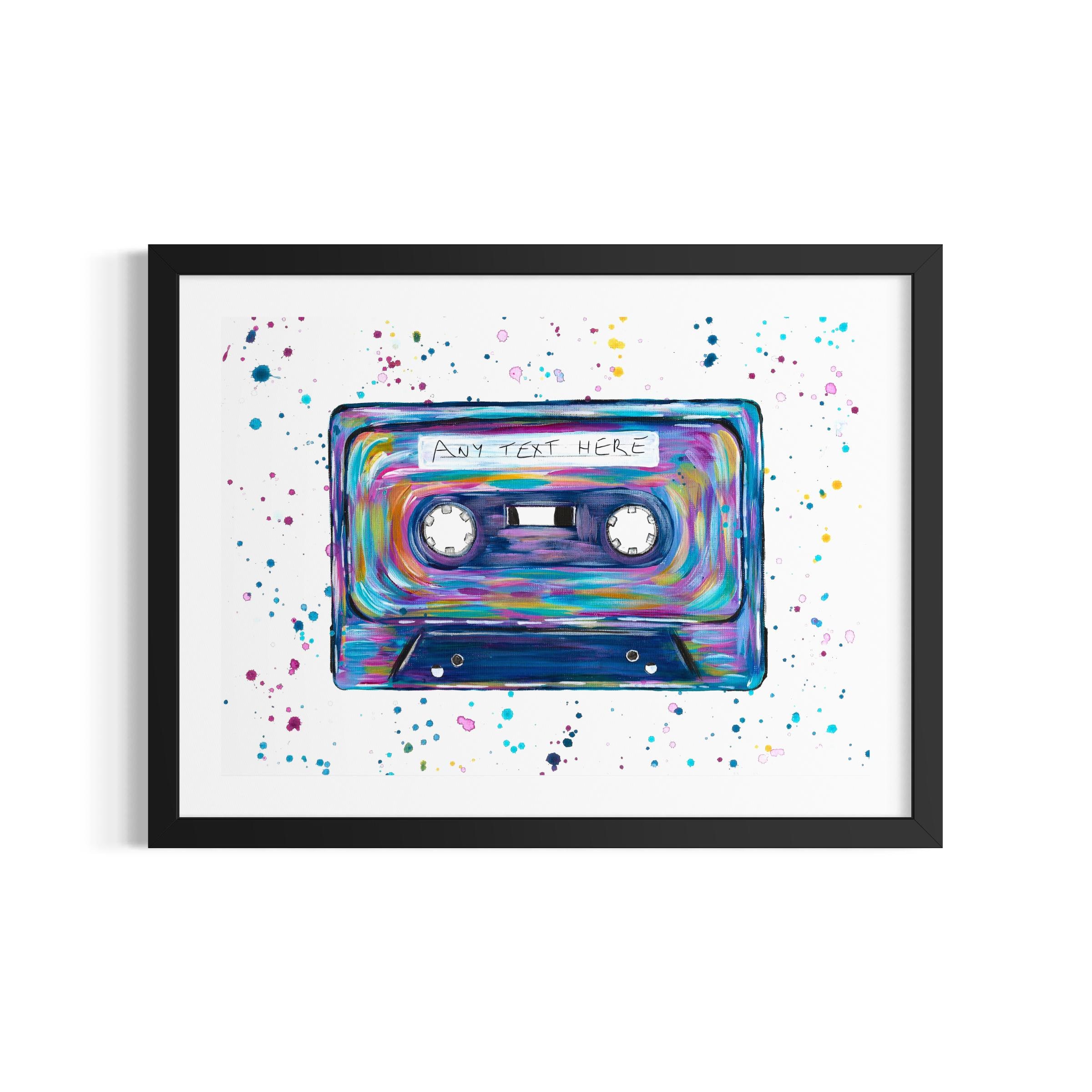 Retro Cassette, Mix Tape Art Print with the option to customise with any wording of your choice.