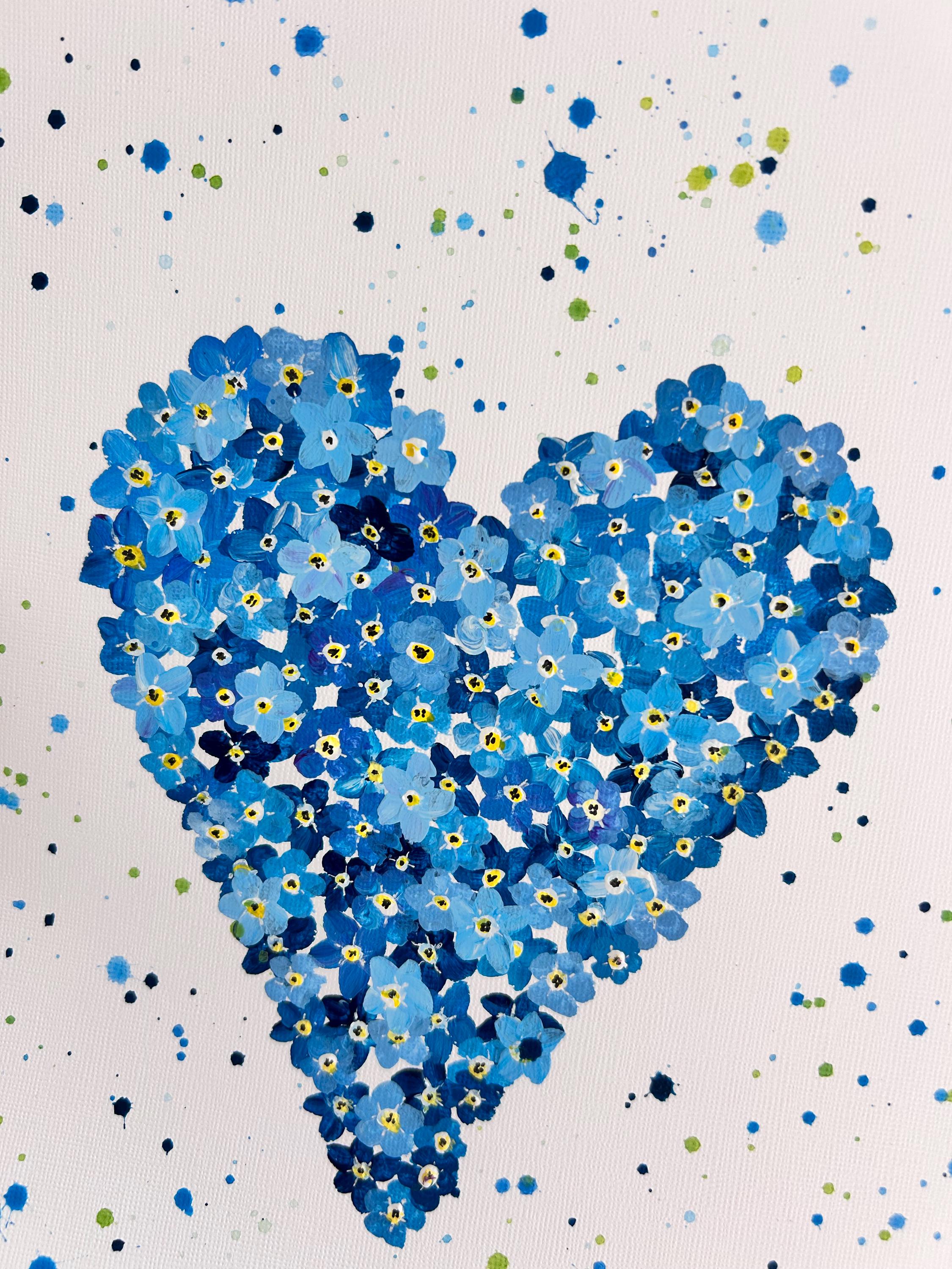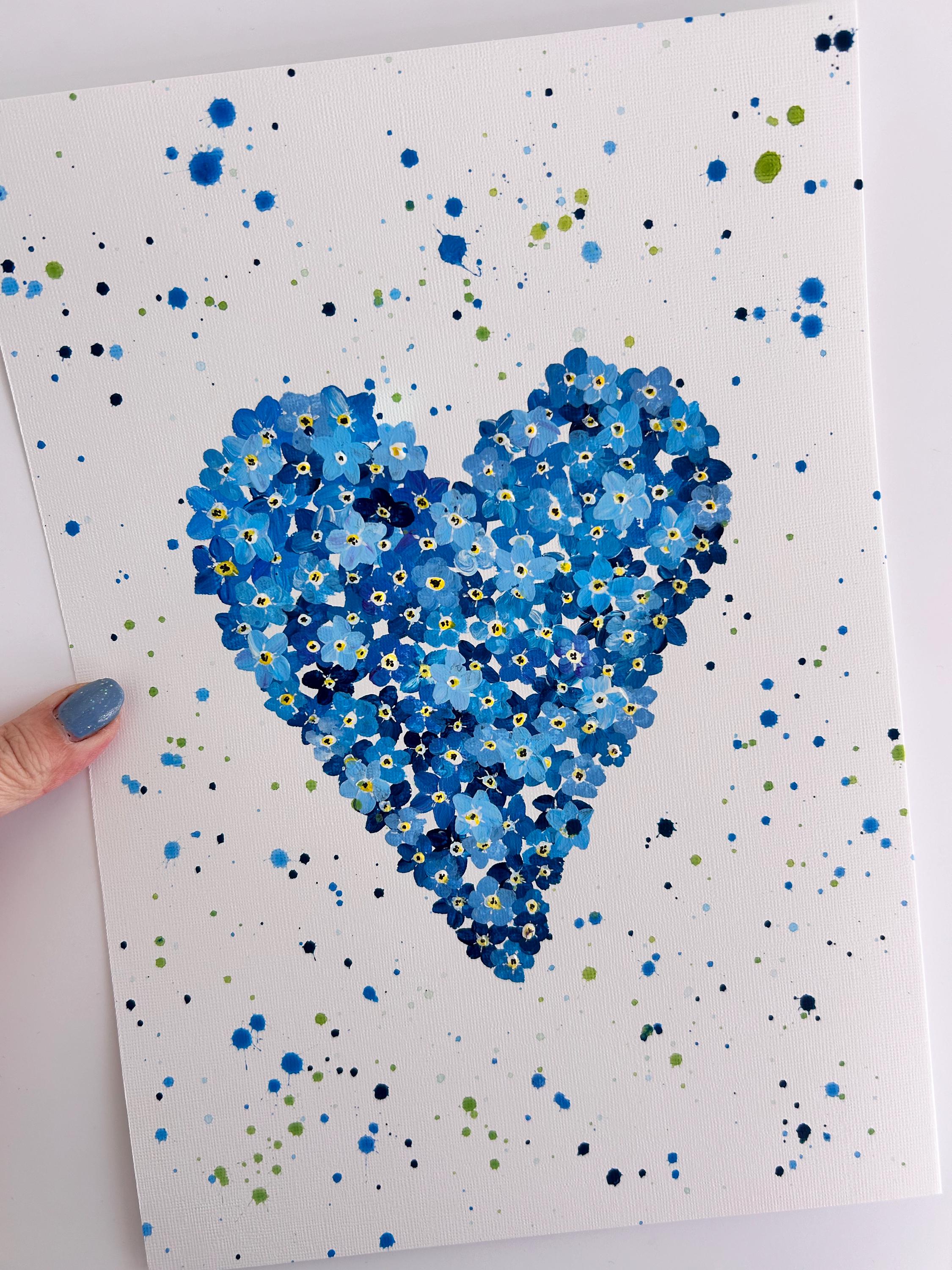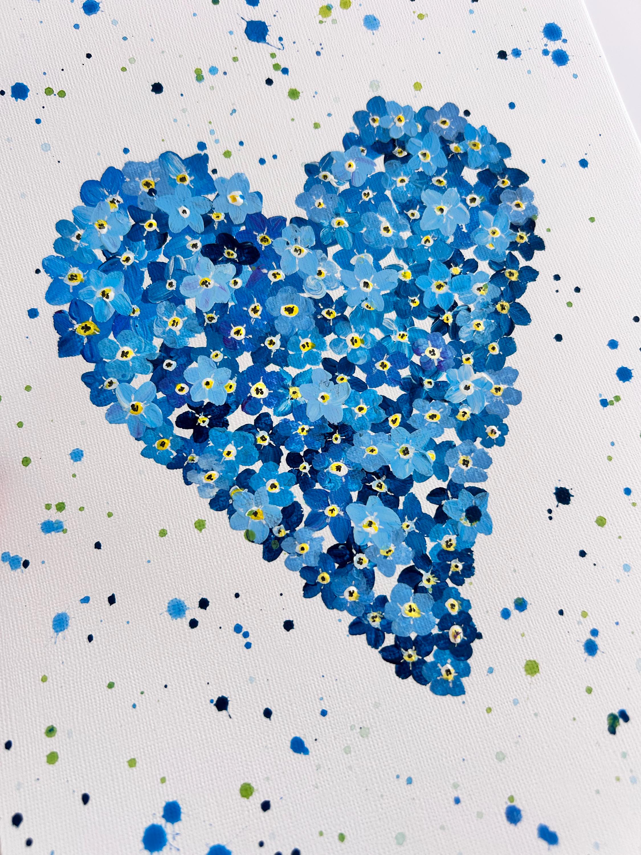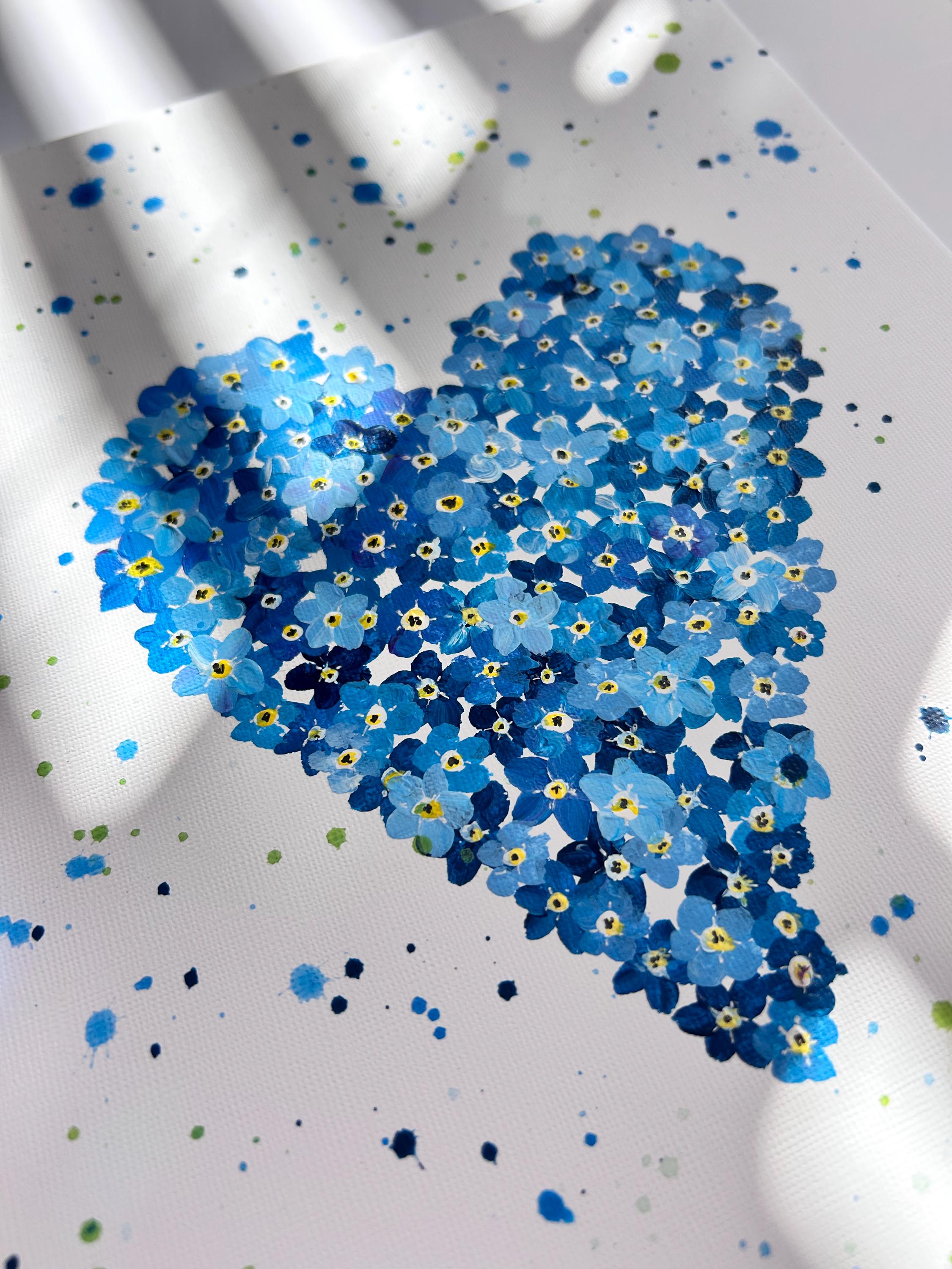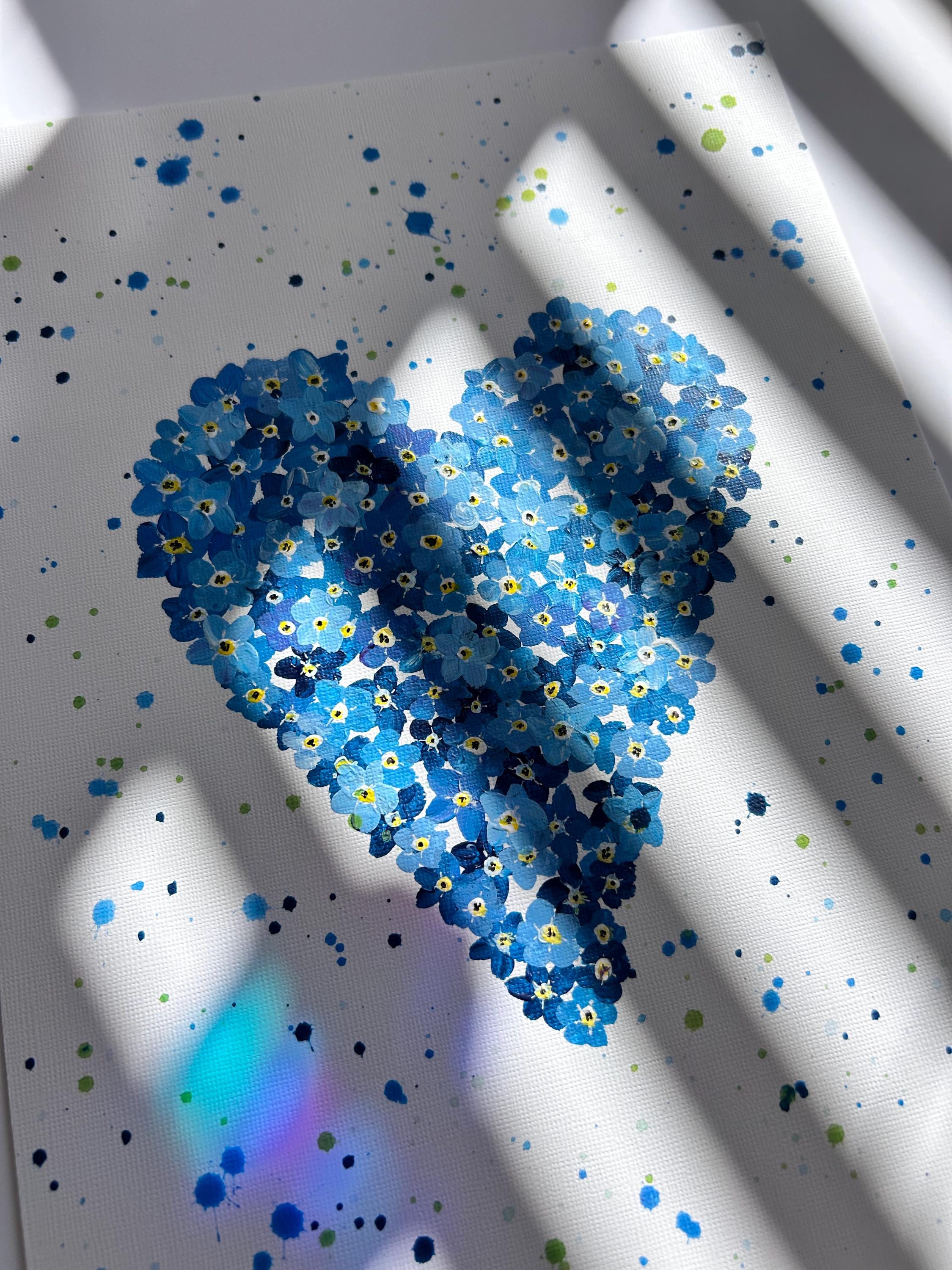 Forget Me Not Heart Original Painting, Blue Wall Art, In Memory of Loved Ones, Home Decor,