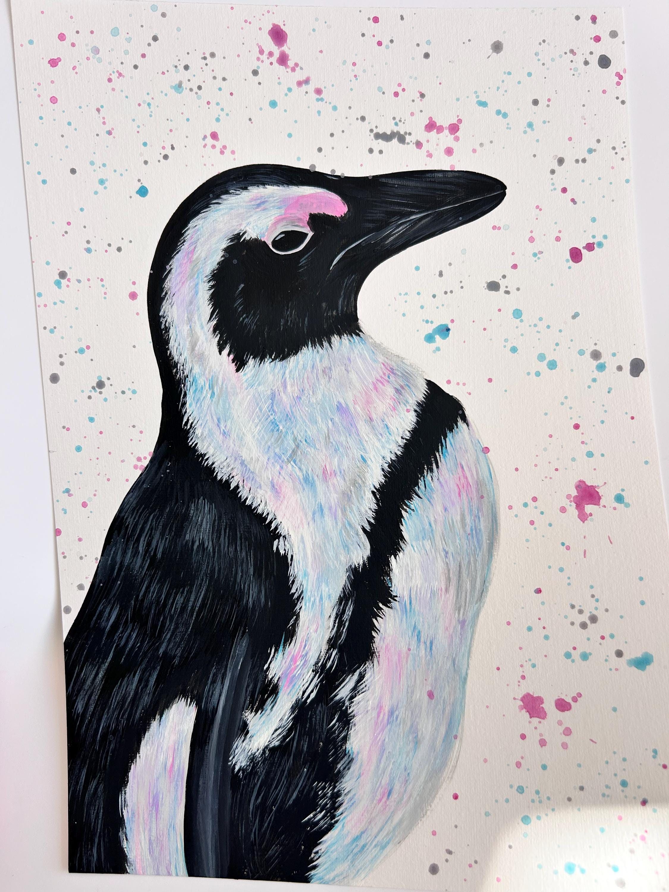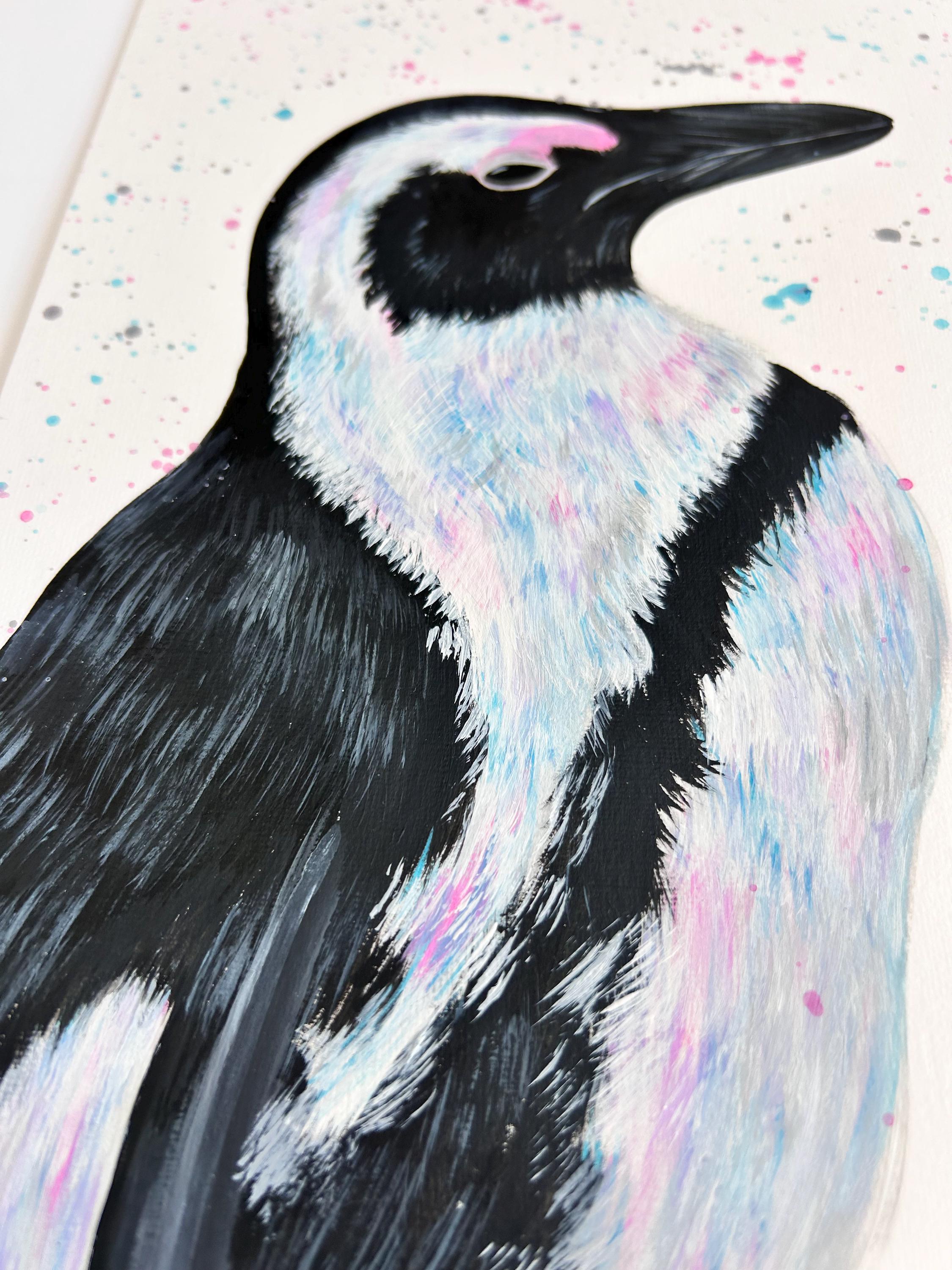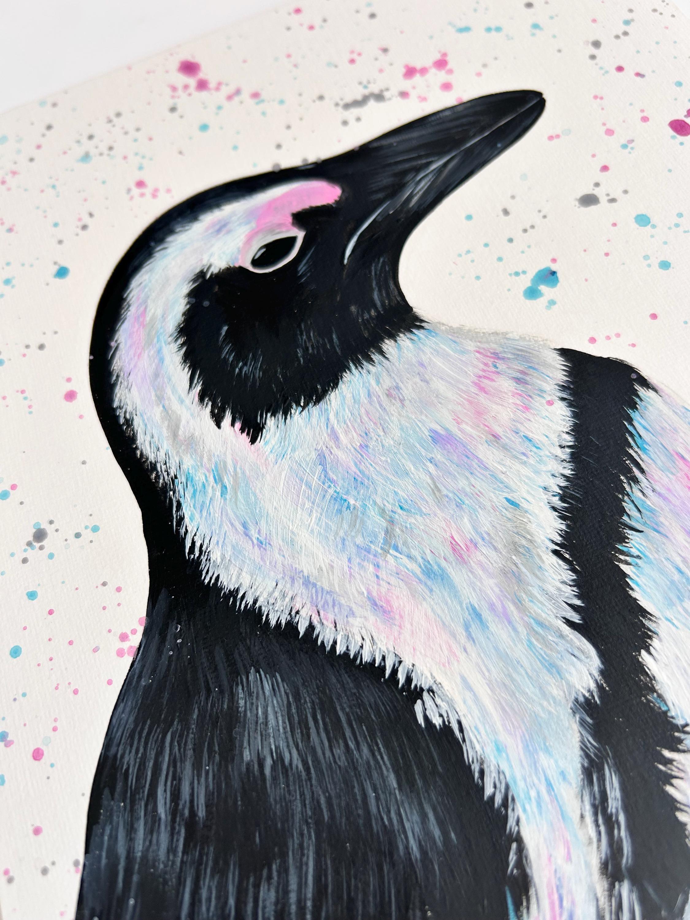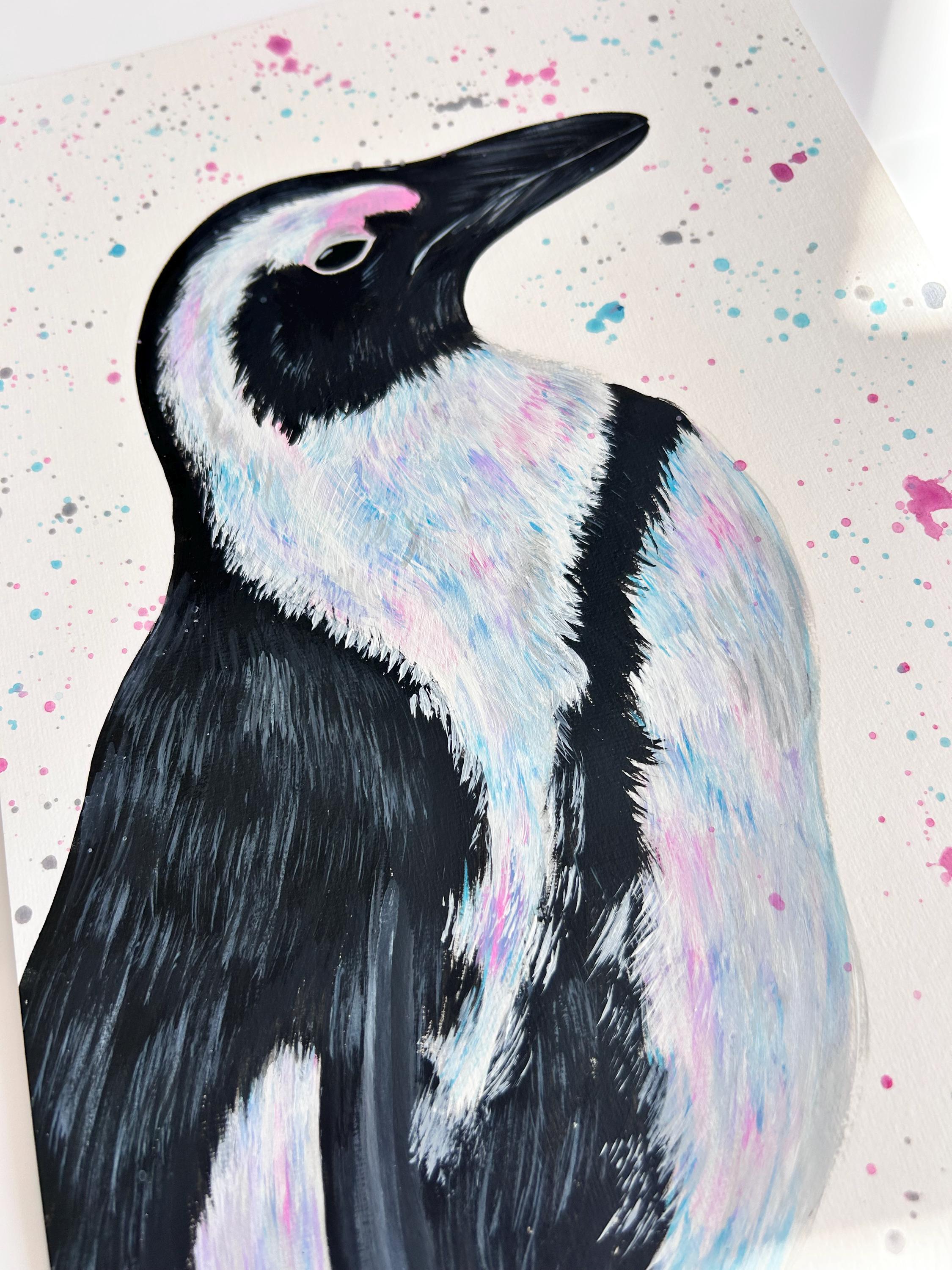 Original Penguin Painting, Hand Painted Animal Artwork, Penguin Wall Art