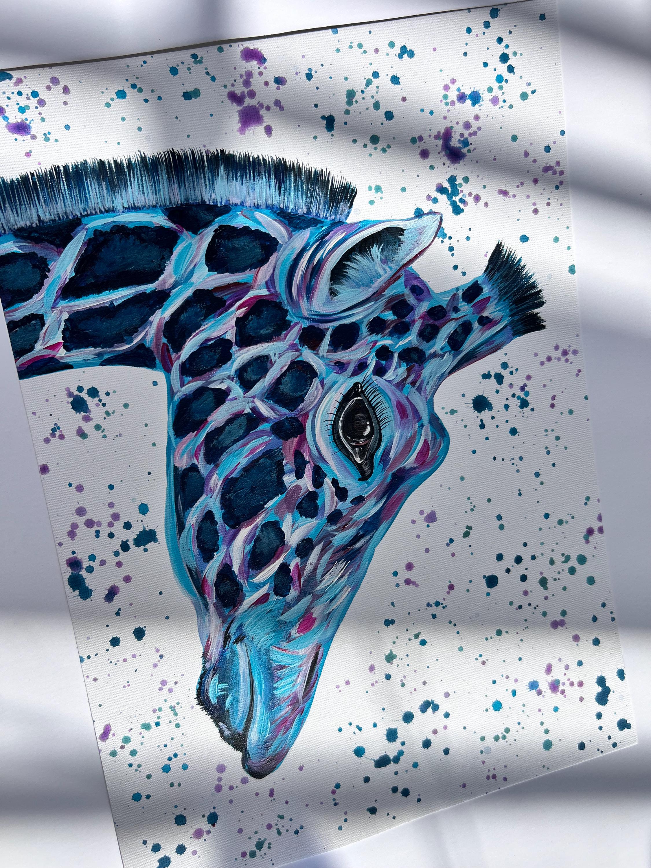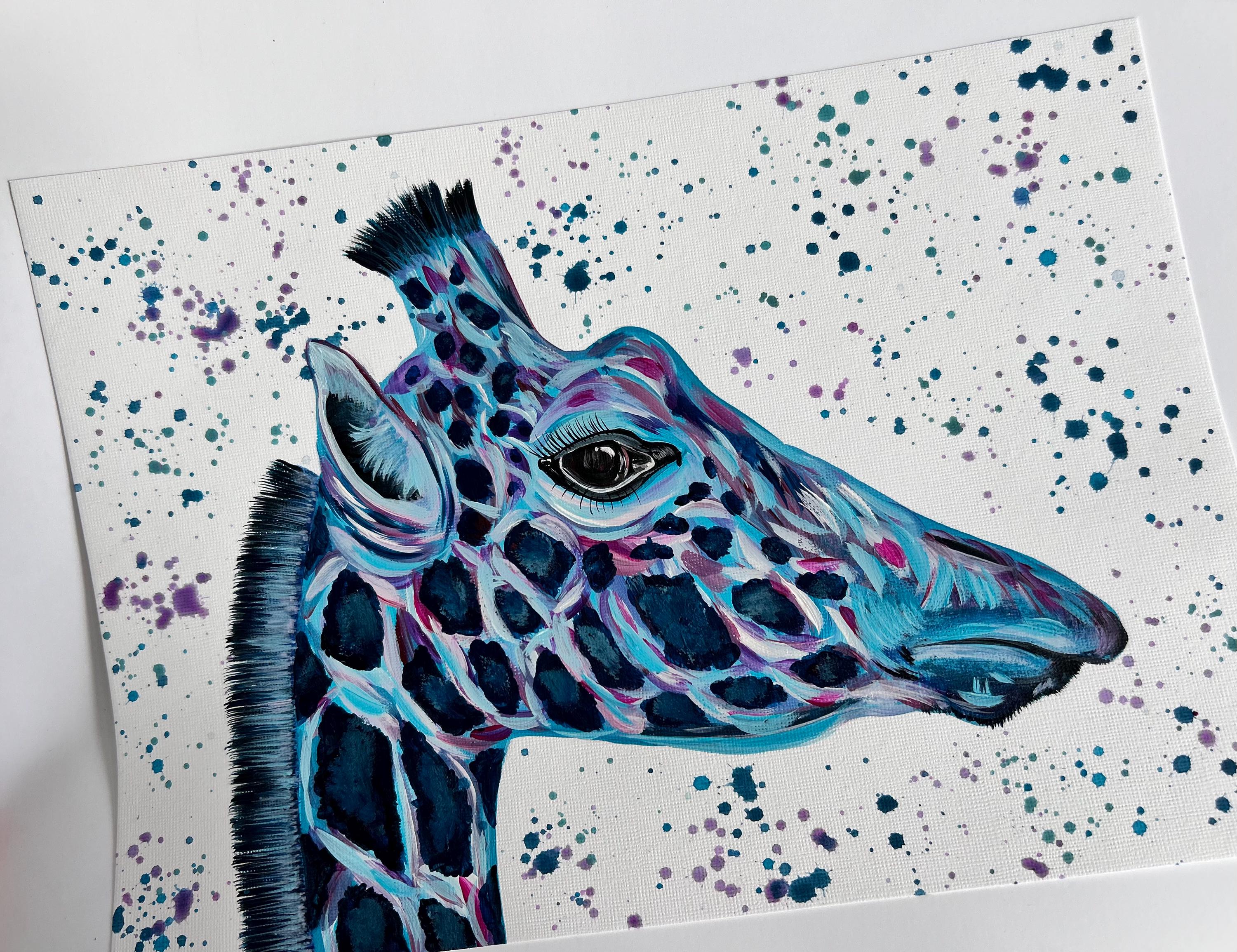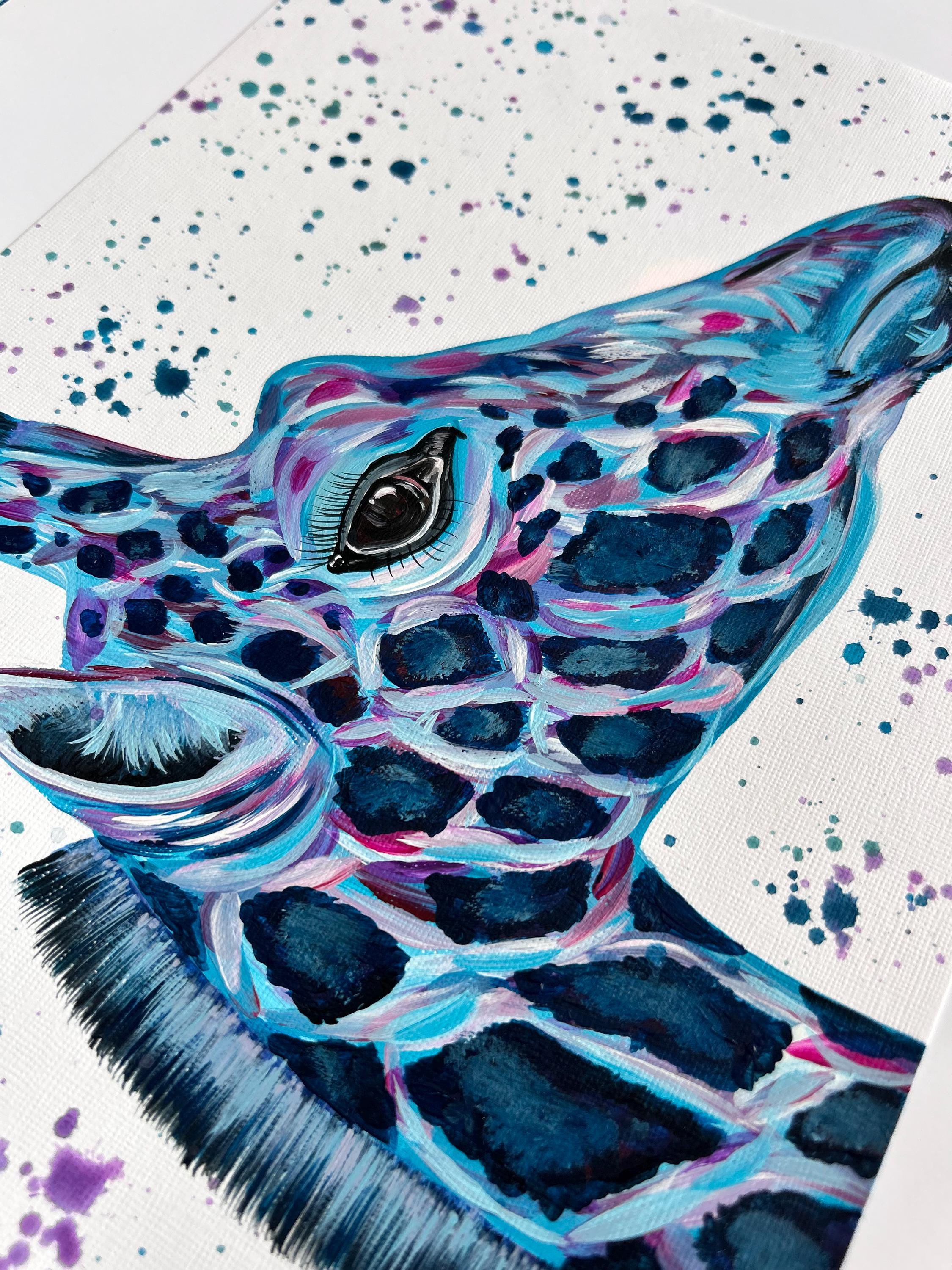 Colourful Giraffe, An Original A4 Acrylic Painting, Safari Animal Painting