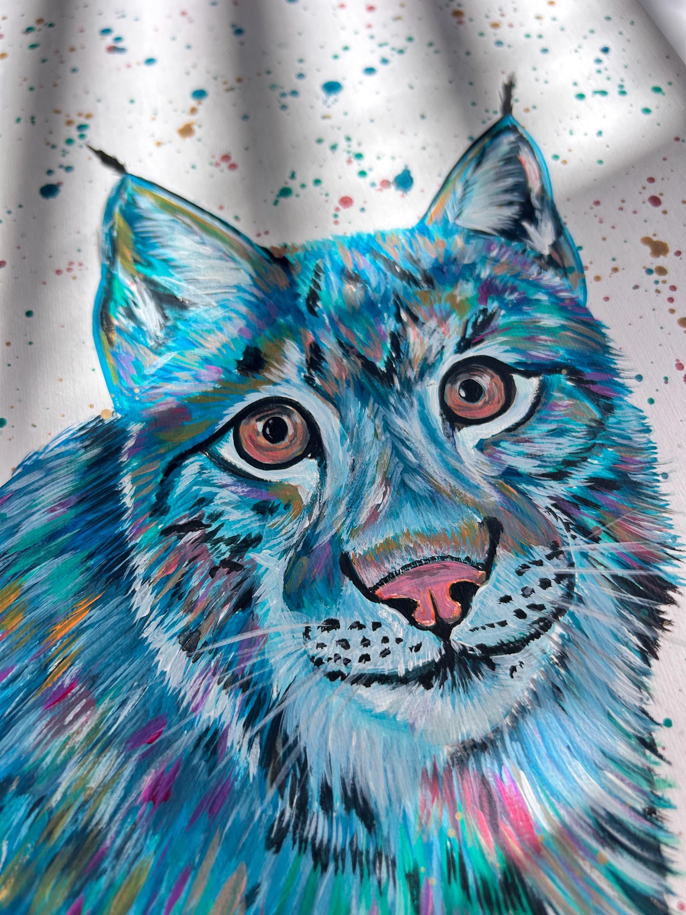 Original Canadian Lynx Painting, Colourful Wildlife Art