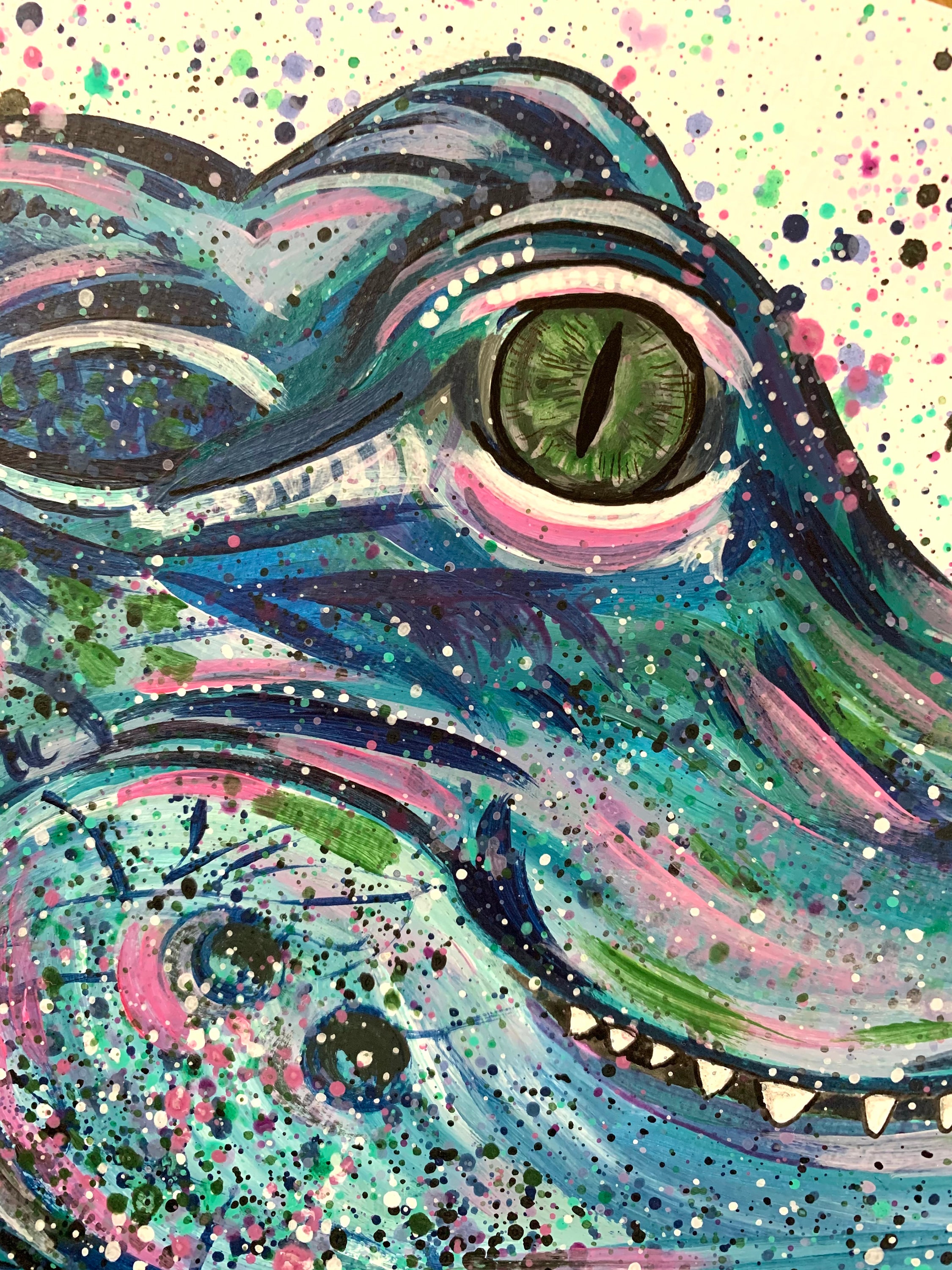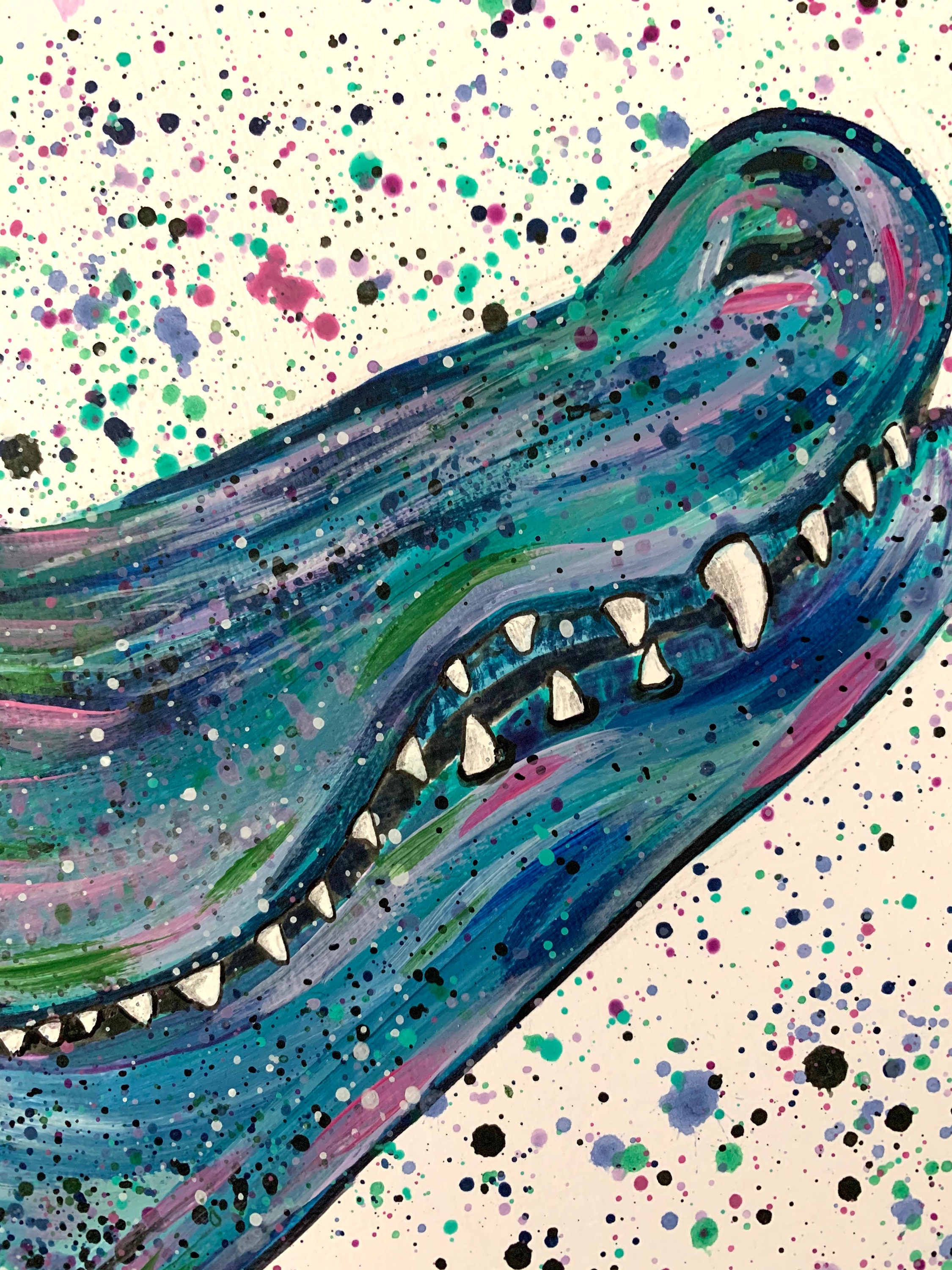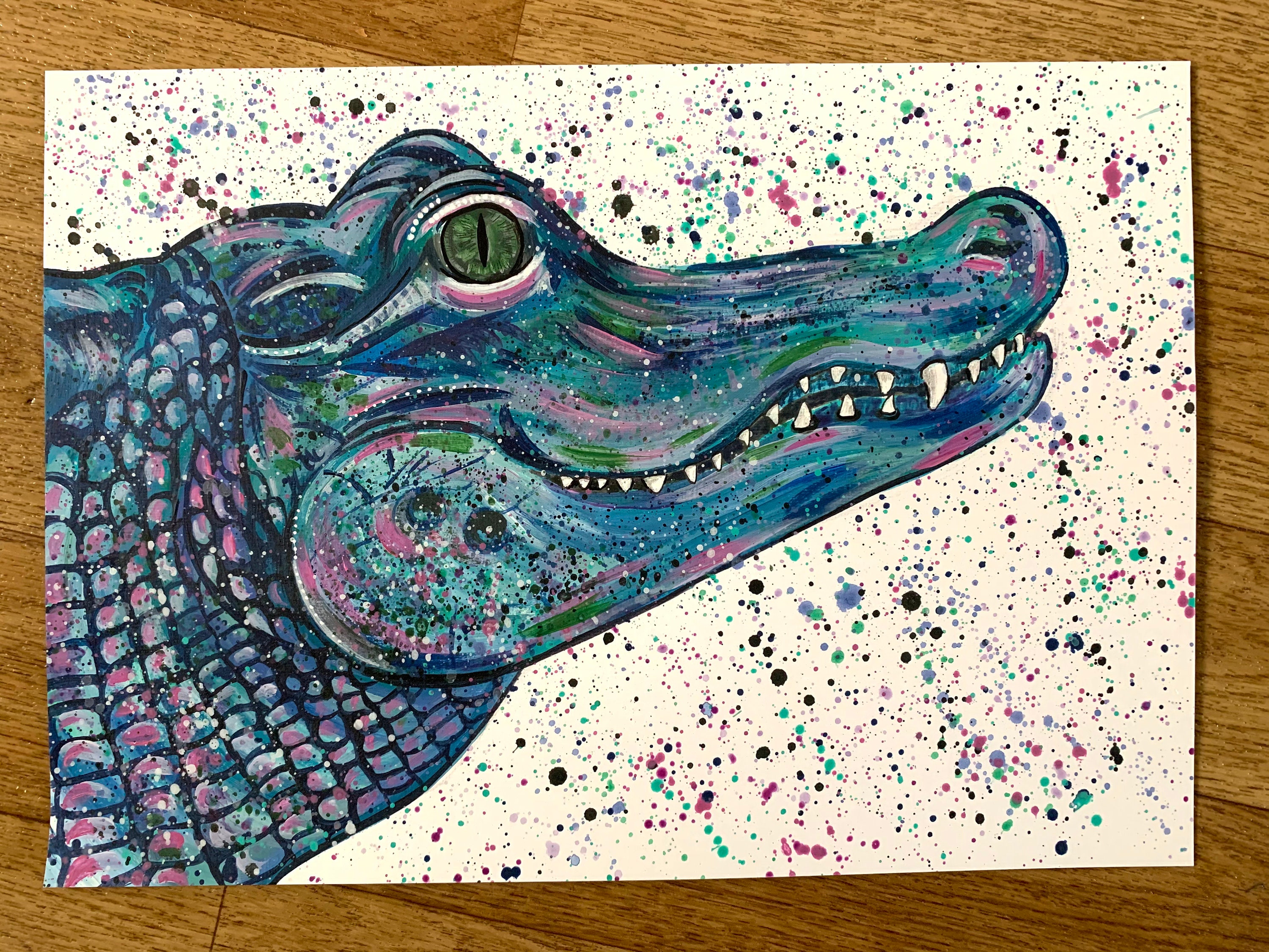 An original acrylic painting of an alligator by myself, Emma LC.