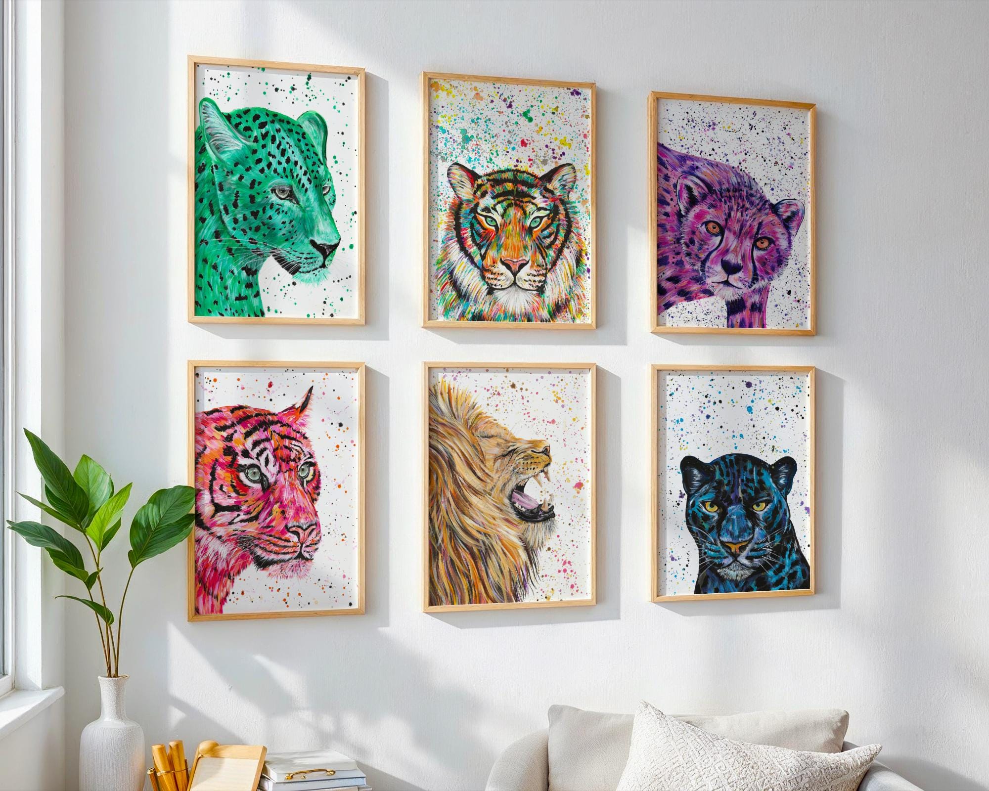 Colourful and quirky animal artworks, designed to brighten up any space in your home. These unique prints are perfect for adding a splash of colour and complimenting your decor. Celebrate the wonder of wildlife with these vibrant eye catching designs that are full of life and personality! Ranging from Sea Life to Reptiles, Safari animals to Jungle Life, there’s something for everyone who loves the animals of the world. Display these beautiful art prints in any room. They look amazing in living rooms, kitchens, children’s rooms, nursery’s, offices, bedrooms and more!